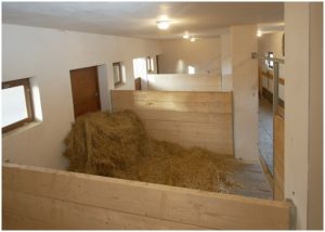 Přes zimu i celoročně je možnost ustájení v čistých prostorných boxech vystlaných slámou. V každém boxu je napaječka, držák na sůl a krmivo.